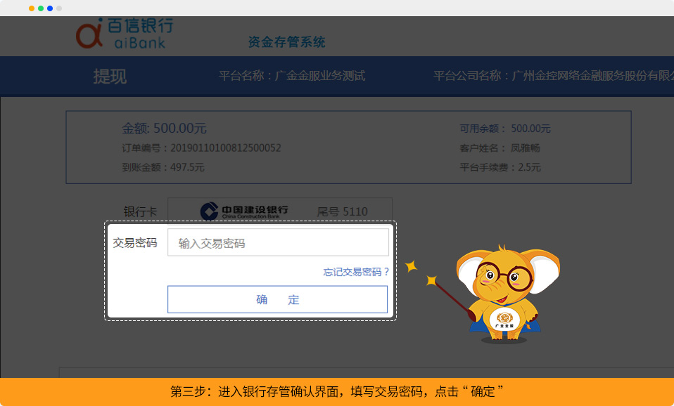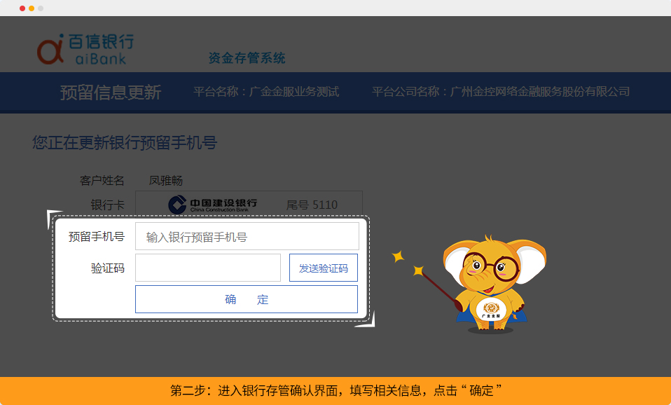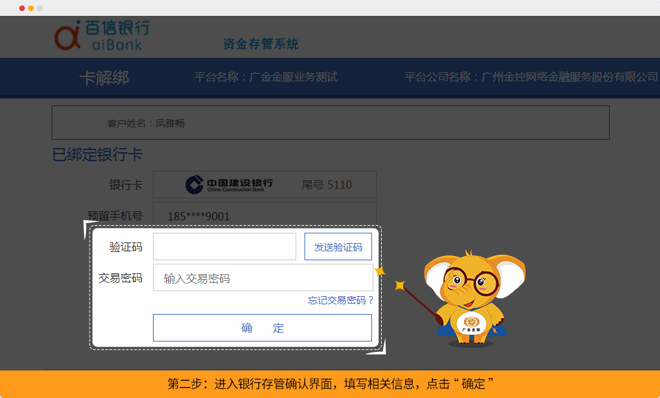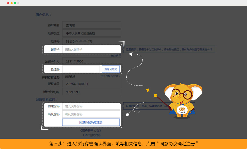 第二步:进入银行存管确认界面,填写相关信息,点击“确定”