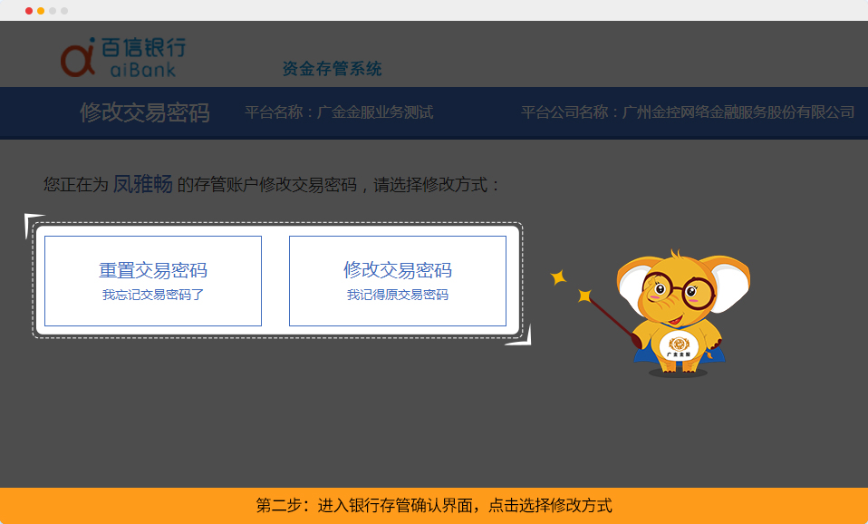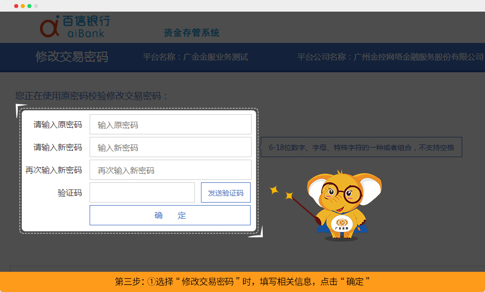 第三步:①选择“修改交易密码”时,填写相关信息,点击“确定”