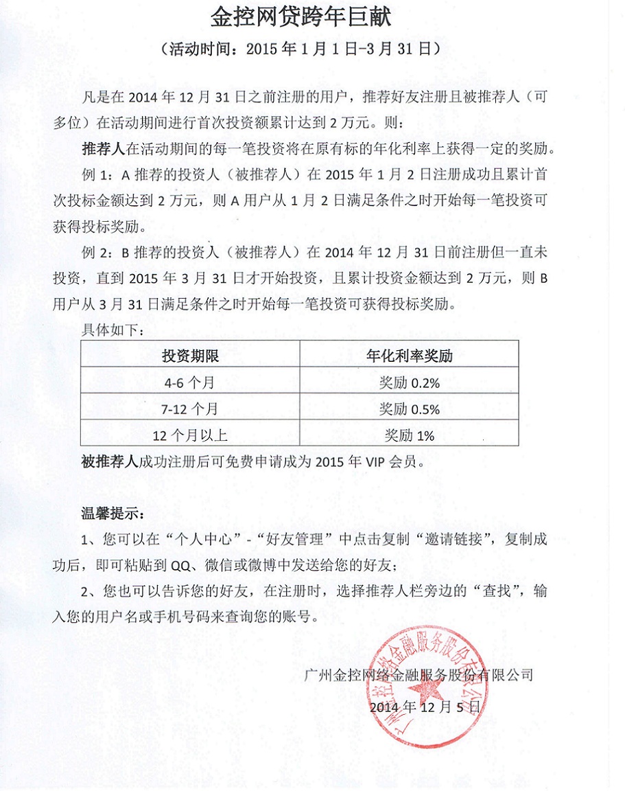 - 金控网贷2015年优惠活动