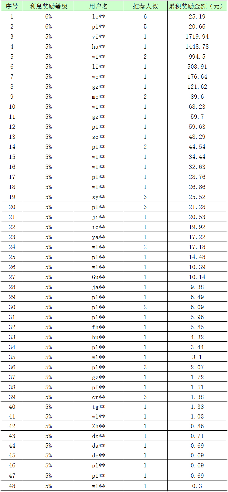 注:因投资推荐奖采用滚动累积奖励形式,故本表每日累积更新