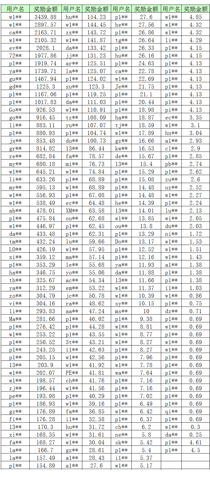 1、因新增待收奖数据要求,获奖名单暂不公布新增待收奖的奖励情况,以活动结束后公布数据为准。