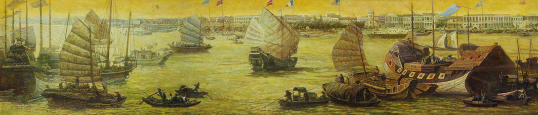 作为老广州标志的西关是众人皆知的地方。西关有一条窄小的马路,名叫十三行,如今的十三行看起来与普通的街道一样,并不显眼,但在清朝时期,这里是广州甚至整个中国对外通商最重要的贸易中心。在清朝年间提起十三行,没有人不知道它的繁华。为了重现昔日的辉煌,广州本土知名画家、广州美术家协会副主席陈铿先生创作了轰动一时的油画《远航之梦——广州十三行》。