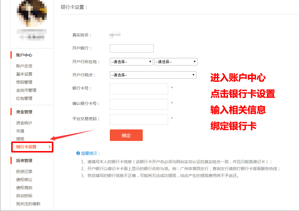 如果您是新加入的金粉,只需要登陆后进入【账户中心】→【银行卡认证】,输入银行卡信息就OK啦~