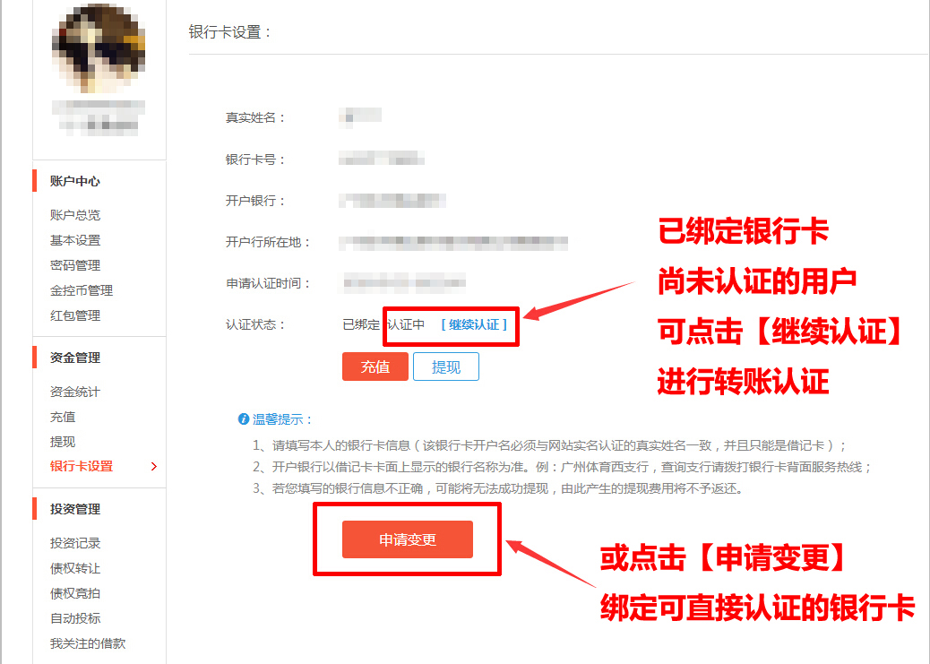 若您是早已注册并绑定了银行卡,但尚未转账认证,银行卡将处于【认证中】的状态。