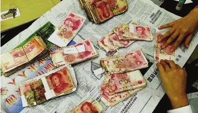 今日,张大爷急需用钱,于是就趁家里无人,将放在暗格里的钱全部取了出来。然而,令人吃惊的是,这些钱全部变成了残币,粘合在了一起,有的甚至已经烂成了碎块和粉末。