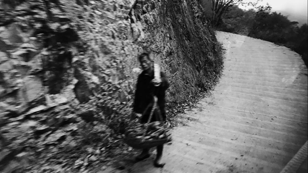 在梯田之间来回农作的老伯伯