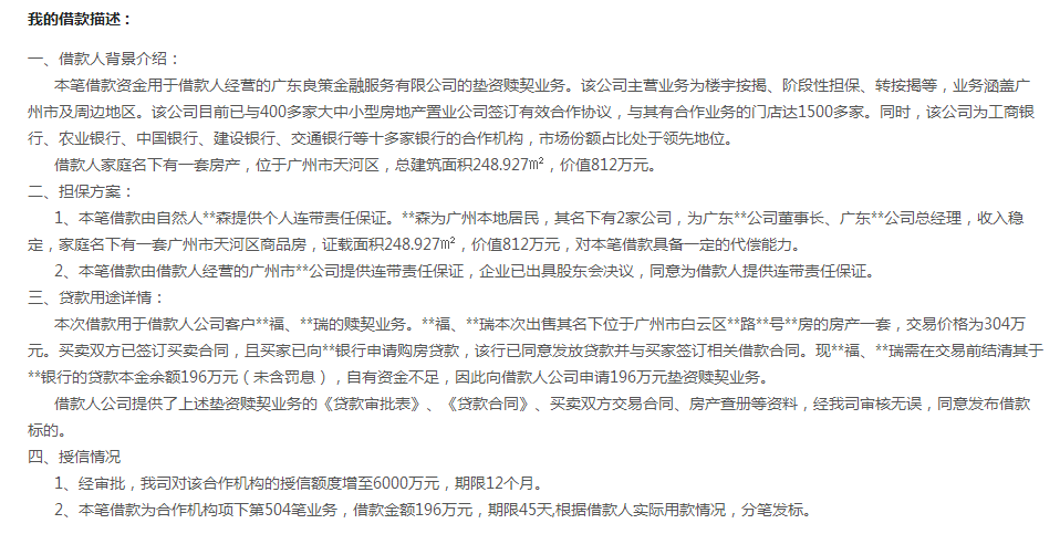 投资理财平台,提前了解标的债权信息是非常非常非常重要的,通俗的话来说,就是看借钱的人是否靠得住。总不能看着什么收益高就买什么,要学着自己做投资,自己为资金复杂。那么,什么样的资产端比较靠谱呢?