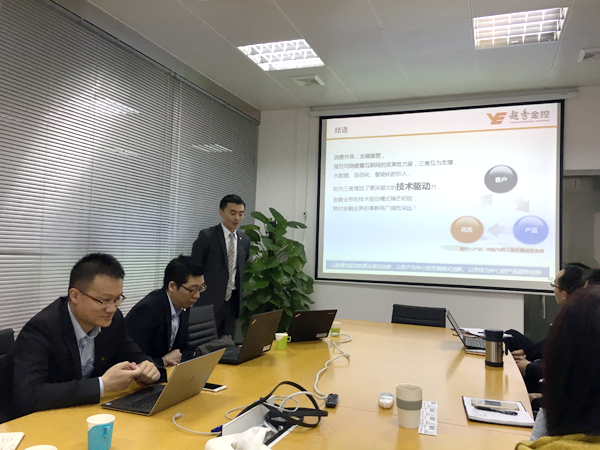上周四(1月19日)金控网贷邀请越秀金控集团旗下的越秀金融科技公司大数据专家团队就互联网金融如何在大数据风控、消费金融、精准营销等方面的数据深挖及模型搭建等内容,与金控网贷的全体成员进行了充分的经验交流与分享。