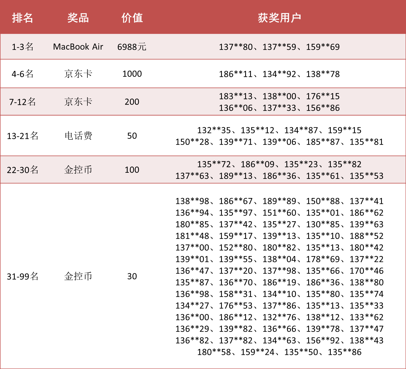 发奖啦!经过小伙伴们的努力,小力来公布拼3活动的获奖名单啦!