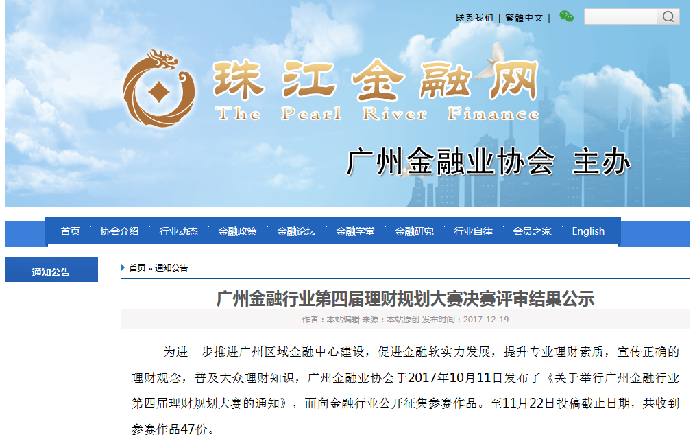由广州金融业协会举办的第四届理财规划大赛,参赛成员汇集了广州地区包括银行、证券期货公司、保险公司、金融控股集团等金融机构。经过2个多月的选拔及竞逐,大赛在12月19日正式落下帷幕。