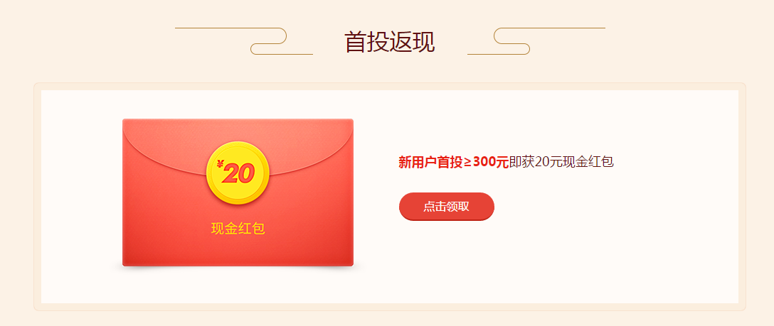 新用户首投≥300元,就有20元现金红包啦~惊喜不惊喜?意外不意外?!快带上朋友一起赚吧!
