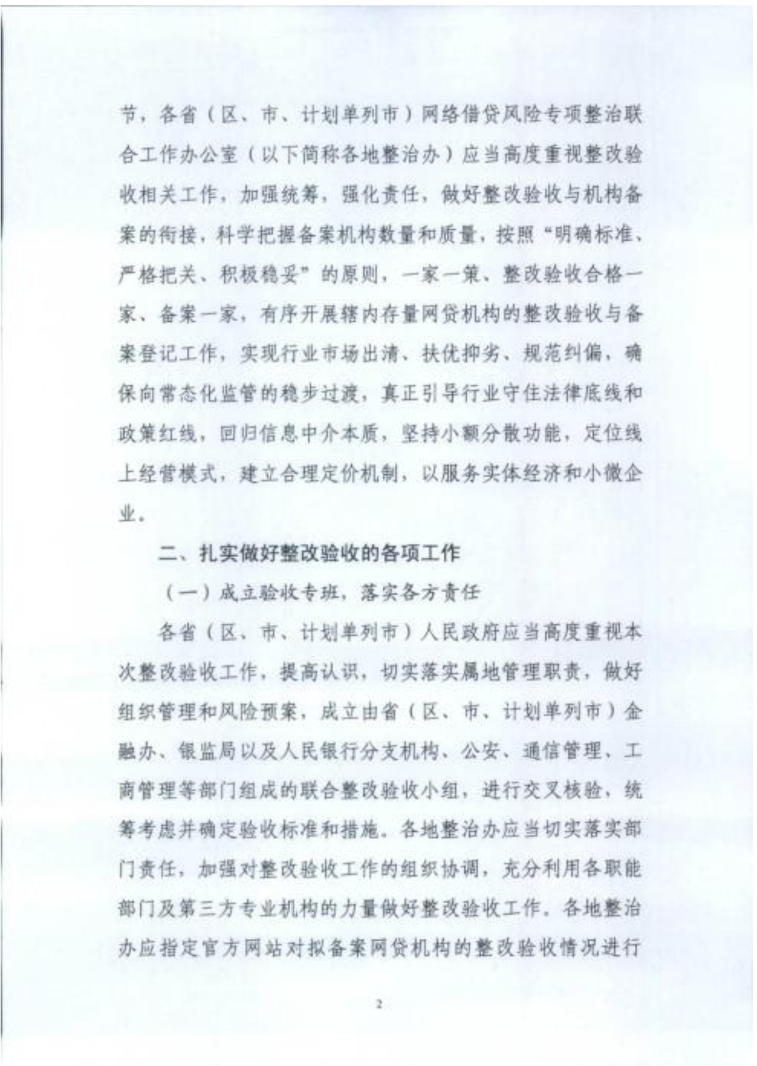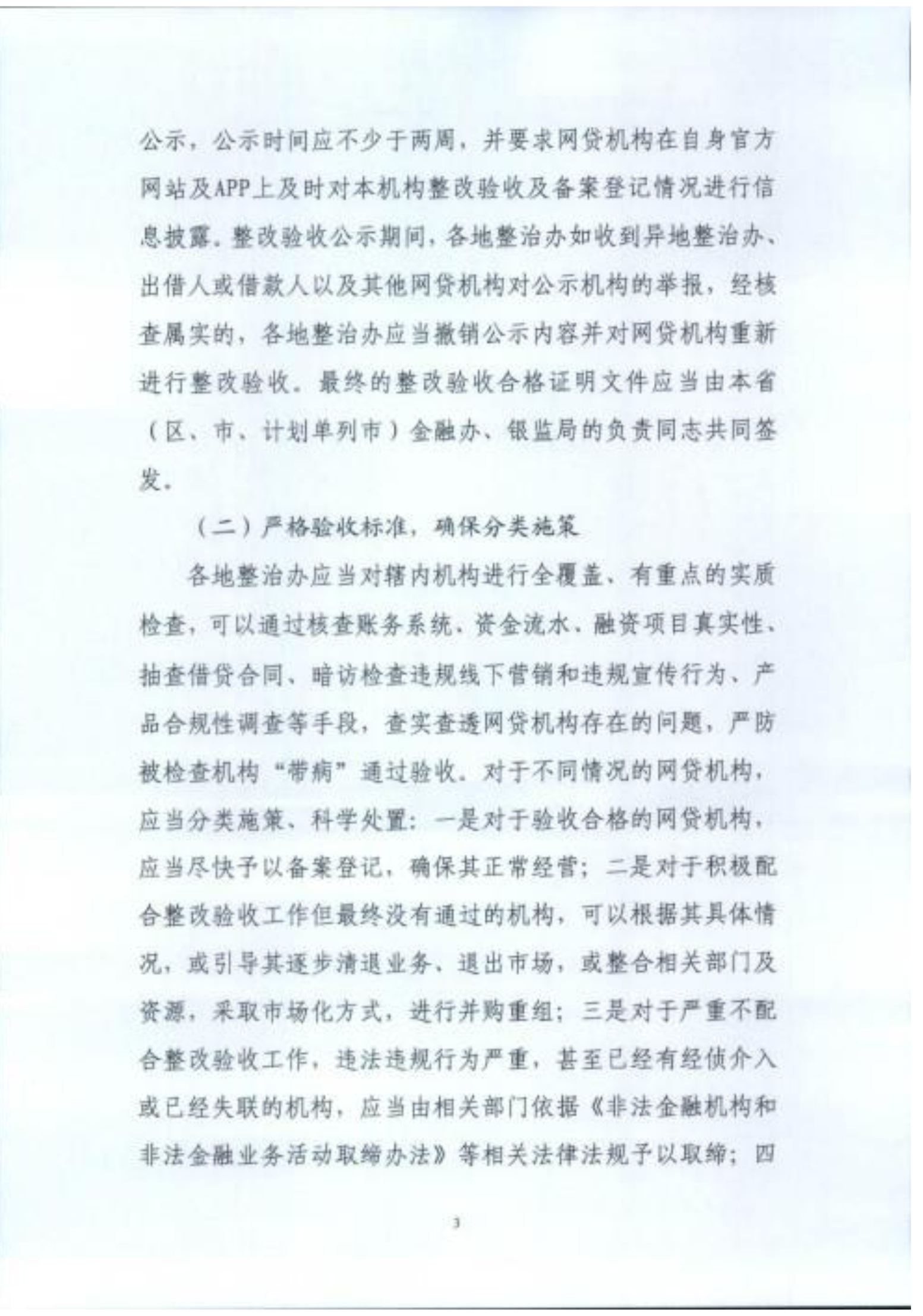 通知指出,各地整治办应指定官方网站对拟备案网贷机构的整改验收情况进行公示,公示时间不得少于两周。