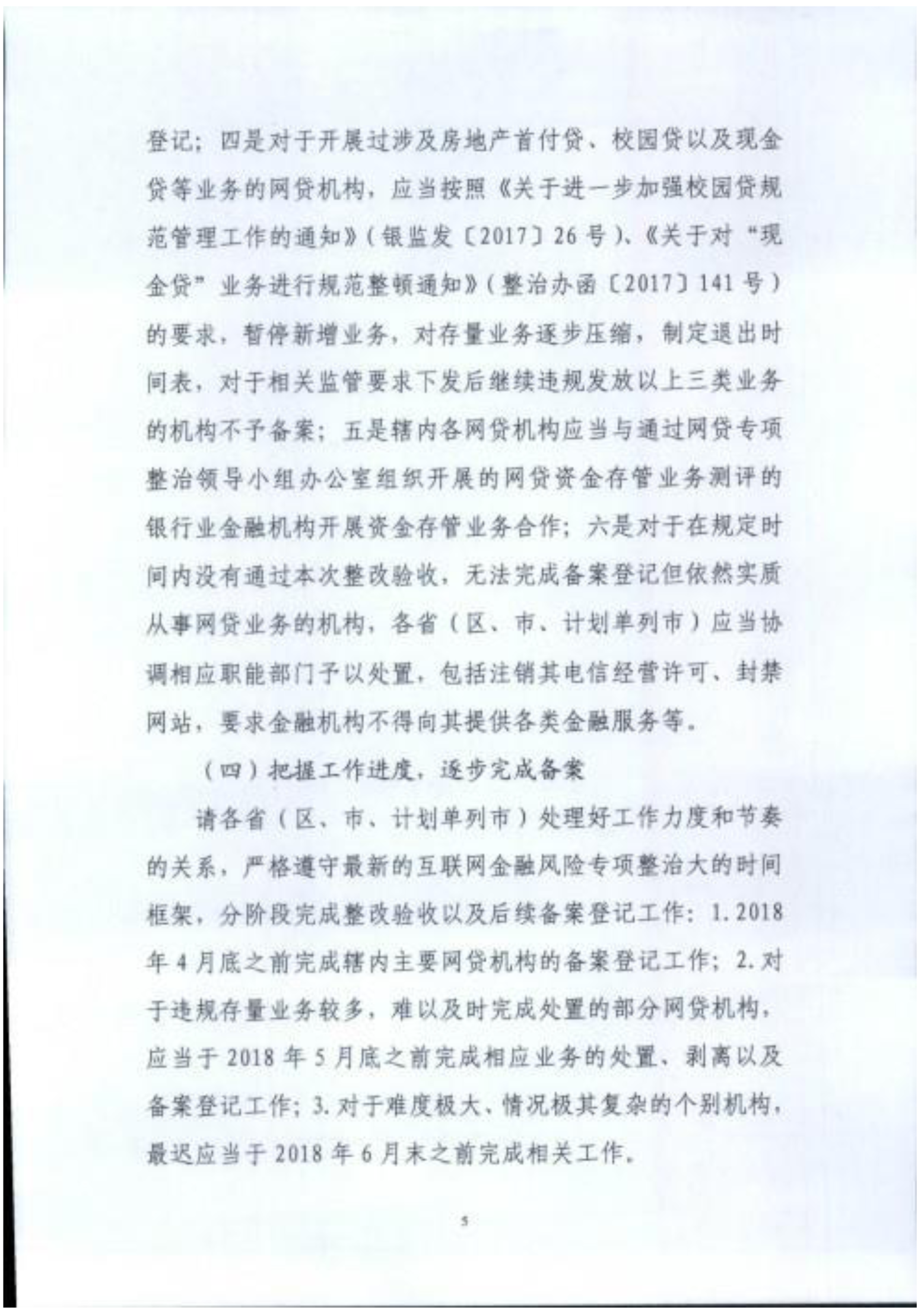通知要求,各地应在2018年4月底前完成辖内主要P2P机构的备案登记工作、6月底之前全部完成;并对债权转让、风险备付金、资金存管等关键性问题作出进一步的解释说明。