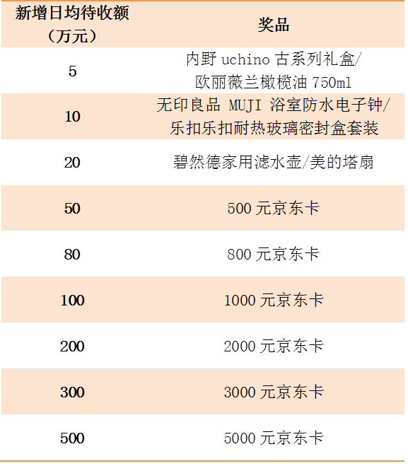 ②活动期间的新增日均待收额为用户第三季度的待收季日均额,例:客户A的6月待收月日均为1万元,7月待收月日均为10万元,8月待收月日均为15万元,9月待收月日均为20万元,则第三季度客户A的新增日均待收额=(10+15+20)/3-1=14万元;