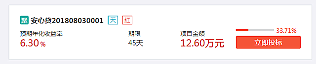 “安心贷”标的借款期限≦45天,6.3%年化收益,一次性还本付息,单笔借款金额在20万元之间,利息按实际用款天数计算。