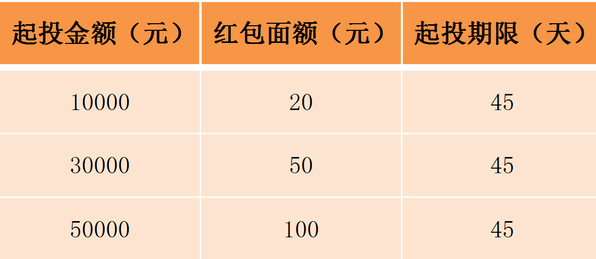 3.兑换的投资红包面值为20元、50元、100元,具体使用门槛见下表,系统自动匹配发放不同面值的投资红包: