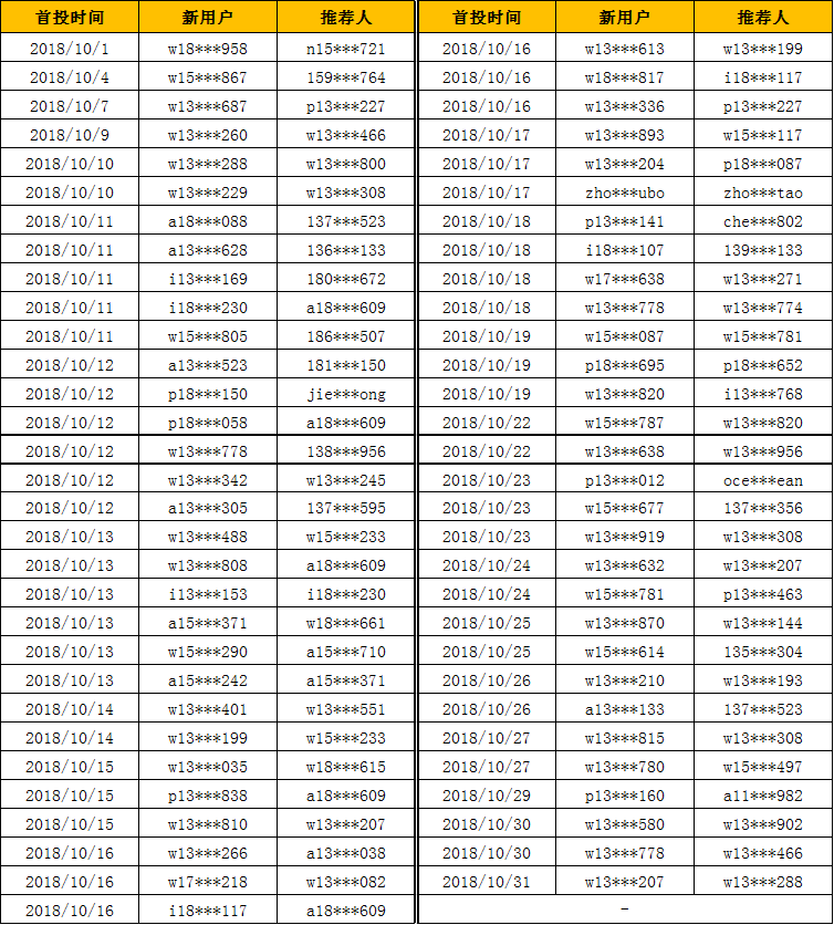 广受好评的「送好友50元京东卡,2%加息券任你拿」活动已在10月31日落下帷幕,10月共有61名新金粉加入广金金服大家庭,获奖新用户及推荐人名单如下,请大家共同见证↓↓