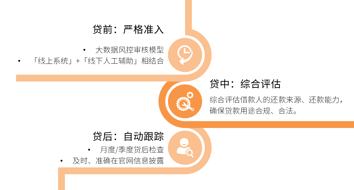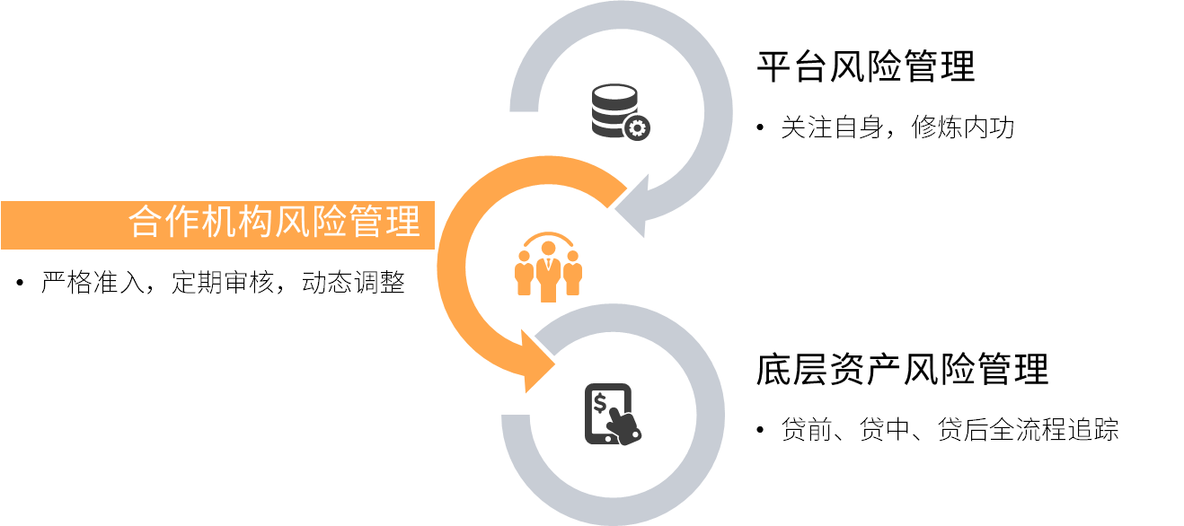 底层资产风险管理从资产的根本入手,一方面严格设置各个产品关键时点的风险控制,包括交易结构管理、资金流管理、信息流管理、法律关系管理等。另一方面对资产进行贷前、贷中、贷后全流程跟踪,通过资产表现实时对风险政策进行调整,并通过调整提升资产质量。